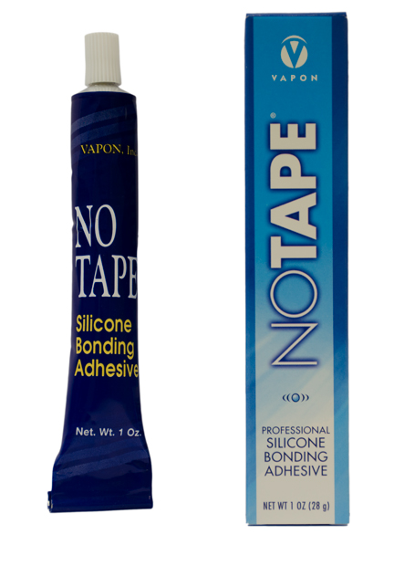 NO TAPE: A medically safe, contact, liquid adhesive. Can be used over existing tape or applied to the tape tab material on the hairpiece. Will not release from the effects of water, heat or perspiration. Apply to the bonding track on hair and the hairpiece and allow to dry. Attach hairpiece to the bonding track on hair. Can be applied directly to the scalp for partial, perimeter, or full-head bonding. Typically holds for 4-6 weeks on perimeter bonding. It is widely used bonding agent for both lace front and toupee pieces.